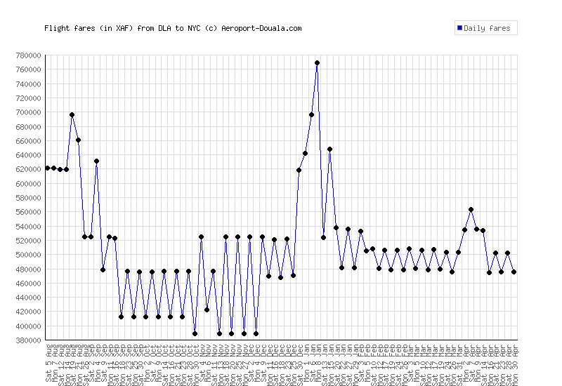 NB : la variabilité chronologique des tarifs étant importante, ces statistiques ne reflètent pas la multitude d'offres des compagnies aériennes (ex : augmentation ou baisse de dernière minute). Par ailleurs, les tarifs sont ceux d'un aller simple dont le prix est très généralement supérieur à la moitié de celui d'un aller-retour. Enfin, certaines compagnies peuvent ne voler ni le lundi ni le samedi sur l'axe concerné.