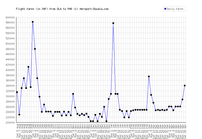 NB : la variabilité chronologique des tarifs étant importante, ces statistiques ne reflètent pas la multitude d'offres des compagnies aériennes (ex : augmentation ou baisse de dernière minute). Par ailleurs, les tarifs sont ceux d'un aller simple dont le prix est très généralement supérieur à la moitié de celui d'un aller-retour. Enfin, certaines compagnies peuvent ne voler ni le lundi ni le samedi sur l'axe concerné.